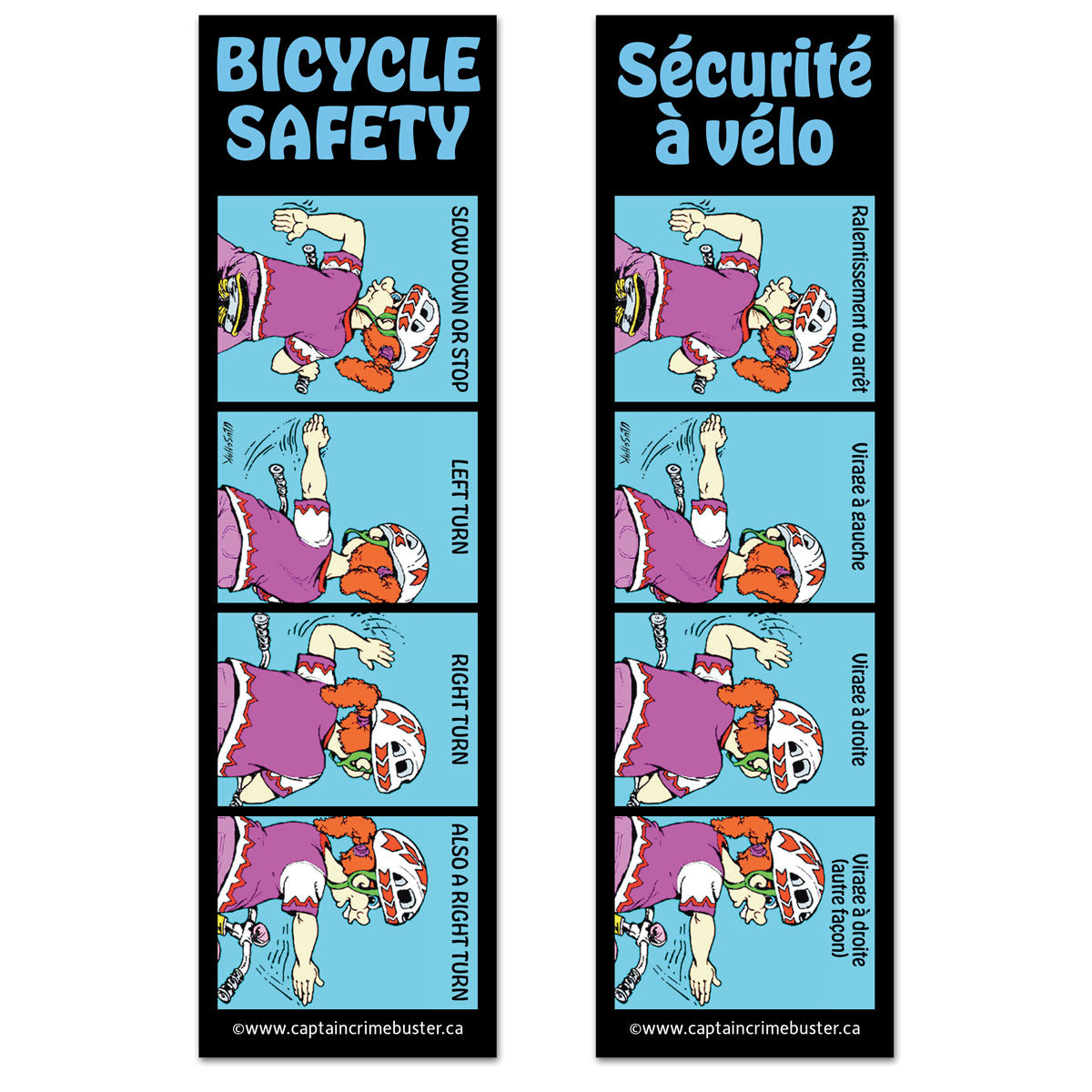 Bicycle Safety Bookmarks teach how hand signals will alert car drivers and others on the road about what the bike rider is going to do next.